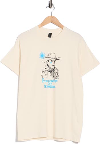 Get in touch with your emotions in this graphic T-shirt depicting a singular bright-blue tear running down a cowboy's face.