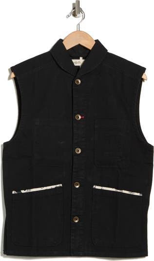 Durable organic cotton canvas enhances the utility appeal of this vest outfitted with plenty of patch pockets.