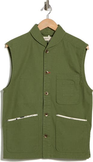 Durable organic cotton canvas enhances the utility appeal of this vest outfitted with plenty of patch pockets.