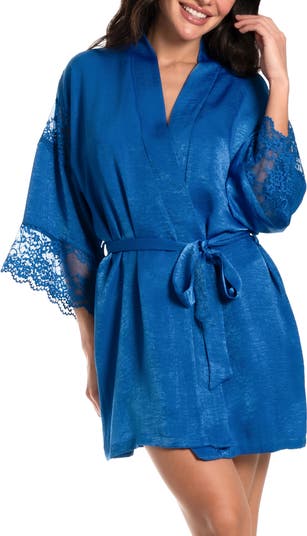 Make your morning routine even better in this luxe wrap—detailed with lace-trimmed sleeves—that feels luxurious against your skin in satin.