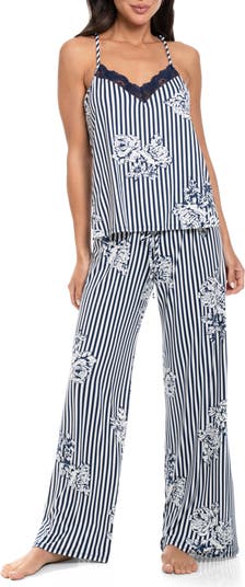 Tonal lace trim adds a fun flourish to your bedtime routine when you don these cuddly PJs that pair a racerback cami with full-length wide-leg pants.