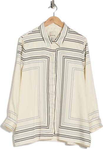 A geometric print enhances the chic style of this flowy button-up shirt that takes you from the workday to weekend with ease.