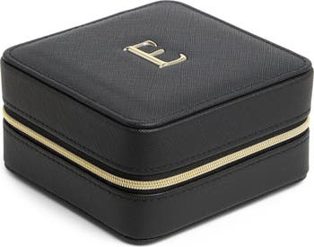 Keep rings and other jewelry secure while traveling with this zip-around case that you can personalize with an initial.