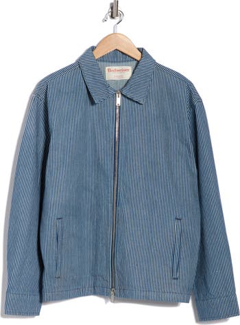 Lean into the workwear trend with this all-cotton chore jacket streaked with slender vertical stripes.