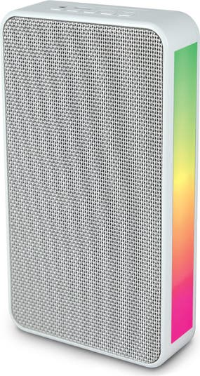 Bring a colorful glow to any room in your home with this wall-mounted Bluetooth speaker framed by rainbow light panels.