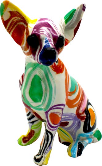 Bring a playful and vibrant touch to your living space with this poised sitting Chihuahua statue covered in swirling circular patterns.