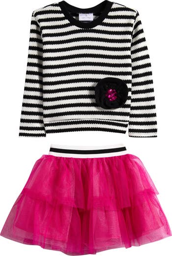 Your kiddo will be spinning and twirling nonstop in the tiered tutu skirt of this charming set complete with a striped top.