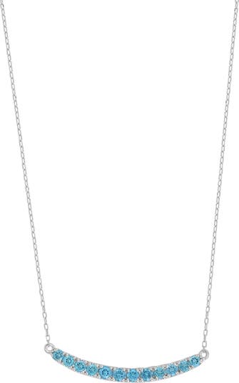 A curved bar pendant glimmering with a row of round-cut topaz brings brilliance to a timeless necklace handcrafted from 18-karat white gold.