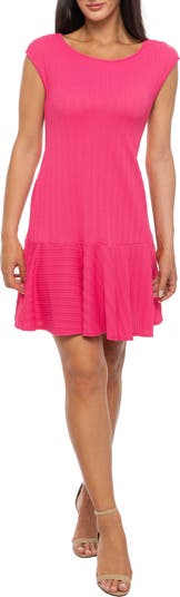 Puckered jacquard enriches this knit dress styled in a drop-waist silhouette that edges out into a flirty flared skirt.