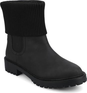 A knit collar adds cozy styling to this Chelsea boot fitted with elastic gore insets for a comfortable fit.