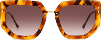 Delicate metallic temples offset the bold, chunky design of these cat-eye sunglasses updated with a clean, angular silhouette.