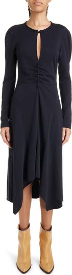 Dorya Center Ruched Long Sleeve Stretch Silk Midi Dress
