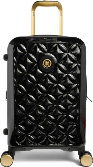 Exterior features: Versatile polypropylene material with a textured surface ensures lightweight durability and protection. A telescoping handle maximizes comfort and control for users of different heights. Four double-wheel spinners glide effortlessly to navigate through busy airports.