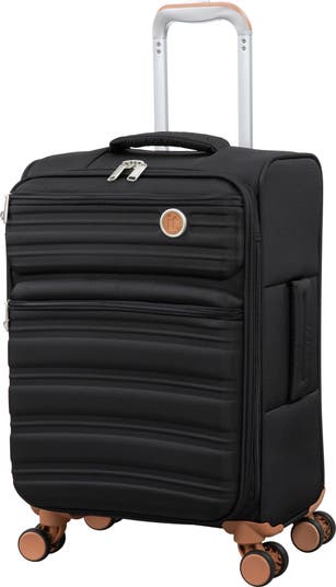 Exterior features: Water-resistant material with a textured surface ensures lightweight durability and protection. A telescoping handle with lightweight tubes to help reduce weight and improve strength. Four double-wheel spinners glide effortlessly to navigate through busy airports.