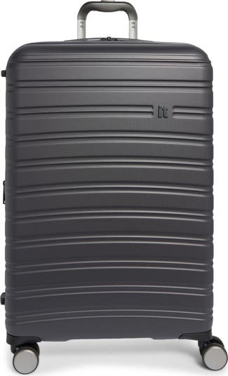 Exterior features: Water-resistant ABS material with a textured surface ensures lightweight durability and protection. A telescoping handle with lightweight tubes to help reduce weight and improve strength. Four double-wheel spinners glide effortlessly to navigate through busy airports.