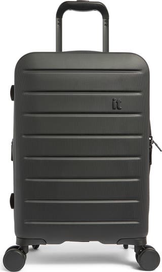 Exterior features: Water-resistant ABS material with a textured surface ensures lightweight durability and protection. A telescoping handle maximizes comfort and control for users of different heights. Four double-wheel spinners glide effortlessly to navigate through busy airports.