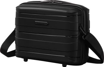 A hard shell protects your valuables from rough travel in a vanity case coated with a water-resistant finish.