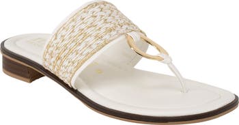 Polished bit hardware and a thick vamp strap shimmering with metallic threading define this sandal that exudes summertime charm.