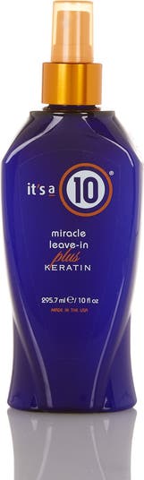 It's a 10 Miracle Leave-In Plus Keratin is an excellent nourishing treatment that can be used alone and/or as a restorative styling product to maintain keratin straightening treatments. It works on all hair types to bring out natural luster and manageability while also making hair stronger and healthier by replacing lost protein with every use. It can be used on wet hair for extra shine or dry hair in place of a styling cream. Protects the natural keratin in hair, protects against heat, restores hydration balance, detangles, defrizzes and adds shine. Strengthens hair structure and seals cuticles for extra silky hair.