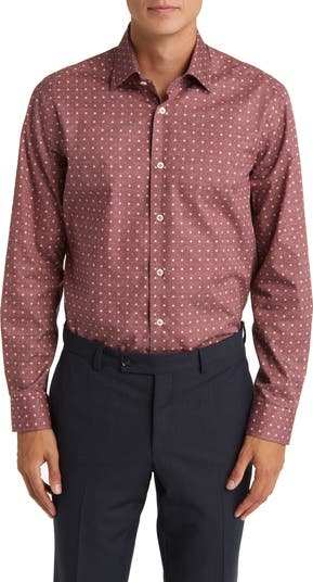 A tasteful foulard print lends classic polish to a rose-hued sport shirt cut in a contemporary fit from breathable cotton.