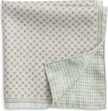 Crafted in Italy, this double-printed silk pocket square offers two refined looks: a modern geometric print on one side and a classic houndstooth pattern on the other.