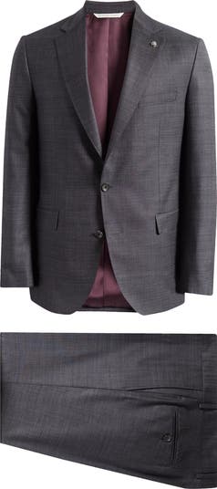 Wrinkle-resistant Italian wool brings polish and distinction to a charcoal-grey suit woven with subtle coloring and styled with traditional detailing for all-occasion versatility.