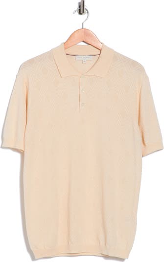 This short-sleeve polo, made in Italy from a refined cotton‑and‑silk blend, features a subtle diamond‑textured pattern that adds depth and a polished finish to a timeless silhouette.