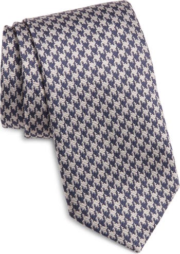 A bold houndstooth design patterns a tie crafted from Italian silk twill to bring polish and distinction to any formal look.