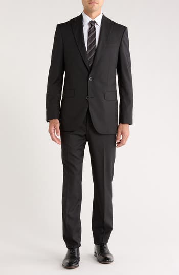 Subtly slubbed Italian wool brings refined versatility to a suit tailored with softer construction in the shoulders and a fitted silhouette for a smart, all-occasion look. The flat-front trousers sit right at the waist and feature lightly tapered legs to blend traditional detailing with a crisp, modern profile.