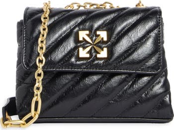 Signature arrow hardware points out the sophistication of a compact leather bag crafted with diagonal matelassé quilting and a chunky-link chain strap.