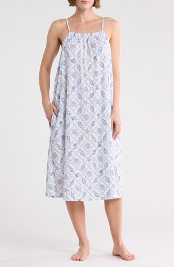 Perfect for sleeping or weekend lounging, this lightweight midi chemise is full of coastal charm.