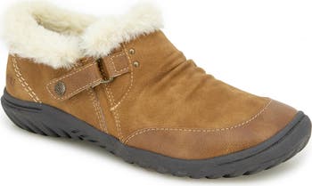Fuzzy faux fur lines this slip-on fitted with a side buckle strap and elevated by a water-resistant finish.