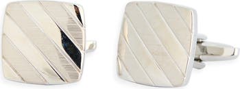 A diagonal brushed-and-polished pattern adds visual intrigue to these cuff links made from icy silvertone plate.