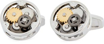 Add an industrial edge to your formalwear or business attire with these polished cuff links featuring gear accents in a tri-tone design.