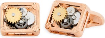 Add an industrial edge to your formalwear or business attire with these polished cuff links featuring gear accents in a tri-tone design.