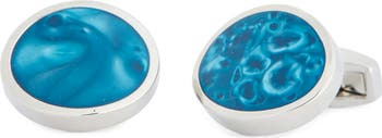 Peralized green enamel inlays illuminate these refined round cuff links made from icy silvertone plate.