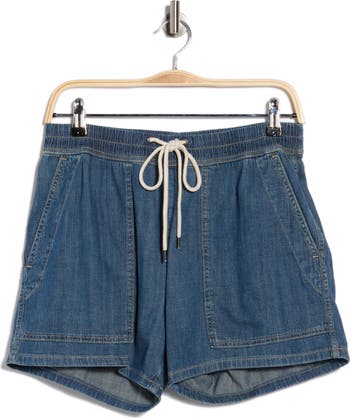 A stretchy drawstring waistband and breezy silhouette amp up the warm-weather perfection of these high-waisted shorts cut from all-cotton denim.