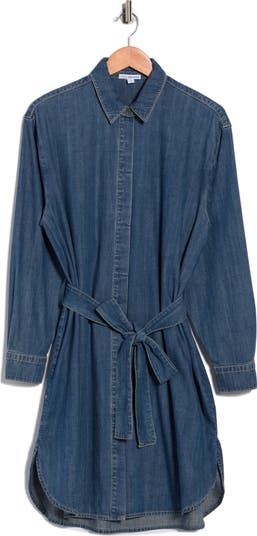 Get one-and-done style with this long-sleeve shirtdress cut from comfortable cotton denim in a dark wash.