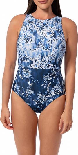 Contrasting foliage brings all the tropical vibes to this one-piece swimsuit designed with supportive panels that smooth and mold for comfort as you lounge poolside.