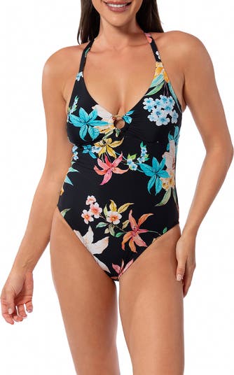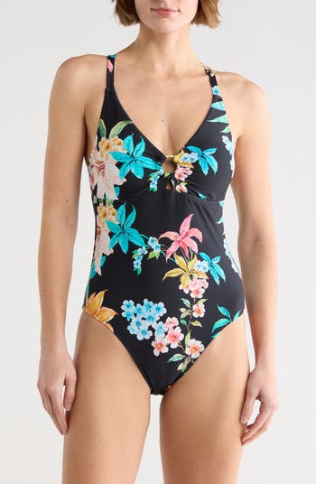 Internal panels are designed to mold and sculpt the fit of a one-piece swimsuit made with full coverage for comfort whether lounging or swimming.