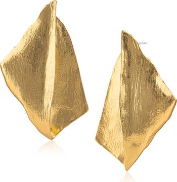 Show off stunning shine with these sculptural drop earrings boasting a textured finish in warm 14-karat yellow gold.