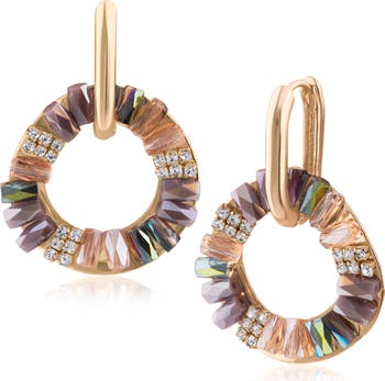 Round- and baguette-cut crystals lend a perfect amount of shimmer to front-facing hoop earrings designed to modernize your jewelry collection.