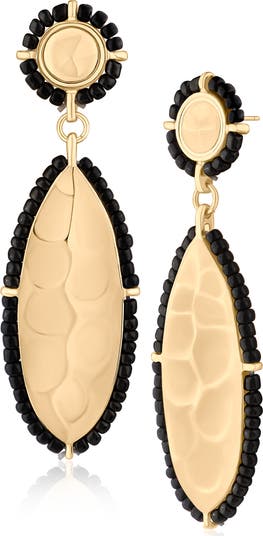 High-contrast beaded trim emboldens the look of geometric drop earrings that deliver pretty shine to your lobes.