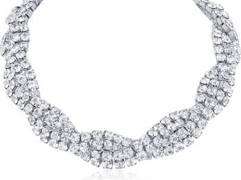 Glam up your look with this tennis-inspired necklace composed of woven crystal chains that sparkle from every angle.