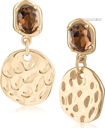 Catch the light with these sparkly crystal and hammered-disc drop earrings that are perfect for a day- or night-out look.