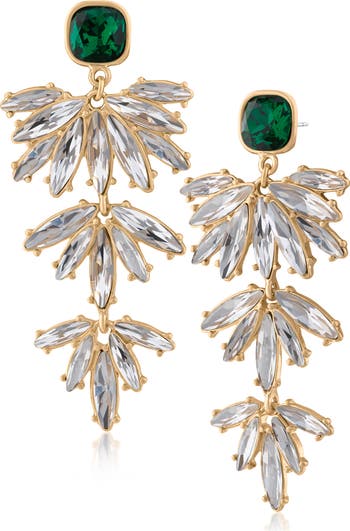 Three tiers of crystal-adorned drops embolden the shine of polished earrings that bring glitz and glamour to elevated looks.
