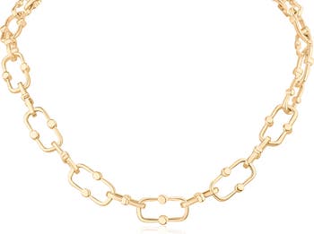 Polished dots add rich texture to a classic paper clip–link chain necklace plated in warm 14-karat gold.