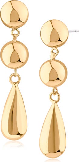 A trio of geometric drops swing from polished earrings designed to illuminate your lobes for casual or elevated looks.