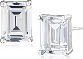 Show off icy sparkle with these prong-set emerald-cut cubic zirconia stud earrings boasting a high-shine finish.