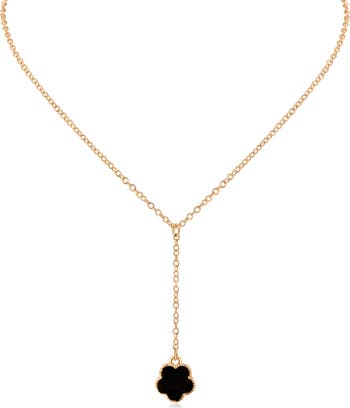 A clover-shaped charm brings lucky energy to the Y-styled silhouette of a delicate chain necklace.
